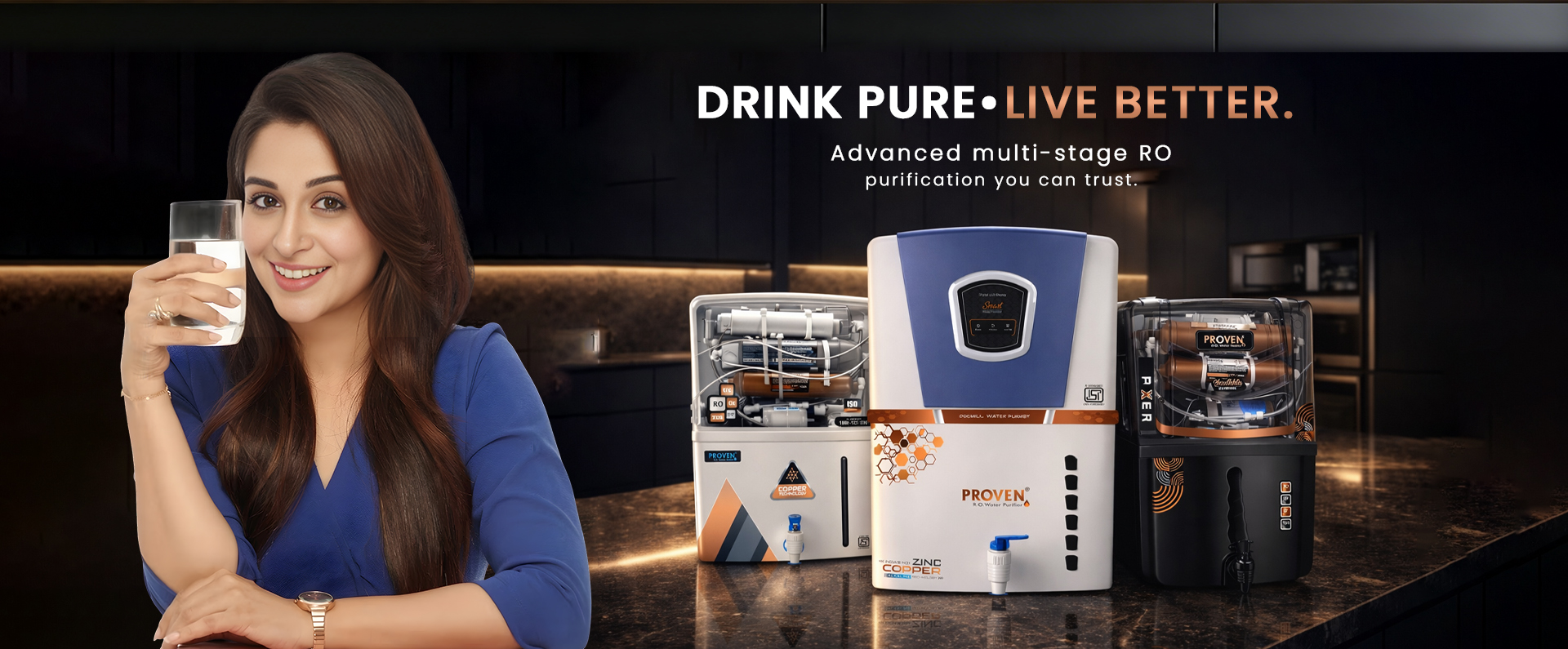 Proven RO Water Purifiers use advanced Reverse Osmosis technology to remove dissolved salts, heavy metals, and harmful impurities, delivering safe and pure drinking water for your home.